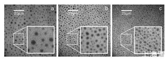圖3:DSPC/DMPC與(a)40、(b)50和(c)60 mol%DSPC的混合單分子膜。放大區尺寸為2525 mm2。