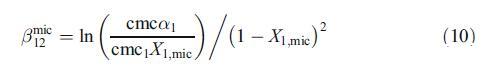 這些結果可以通過使用規則溶液理論(RST)得到證實,該理論不僅表征了混合膠束中的相互作用參數bmic 12,還解釋了偏離理想狀態的原因[20]。根據RST,混合膠束中的活性系數表示如下: