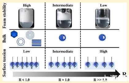 為了研究本體自組裝、界面性能變化和泡沫性能隨R的變化之間的相關性,我們通過結合不同長度尺度的實驗和技術進行了多尺度研究,以解釋宏觀泡沫性能,特別是泡沫穩(wěn)定性。利用小角度中子散射研究了泡沫液體通道內的聚集結構。通過耦合表面張力和中子反射率測量確定表面性質。