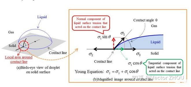 分別為氣液、氣固和液固界面張力。在X方向的力平衡方程,玻璃本身是親水性的(當然如果表面做憎水處理),因此