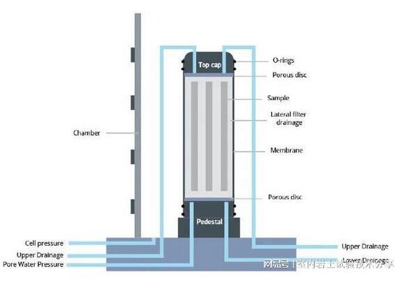 典型的三軸試驗(yàn)涉及將高度直徑比為2:1的密封圓柱形土壤試樣限制在加壓壓力室中,以模擬定義的應(yīng)力條件。然后對(duì)試樣進(jìn)行剪切,直到破壞,從而確定其剪切強(qiáng)度特性。試樣通常先飽和,然后固結(jié),最后剪切,大多在壓縮條件下。
