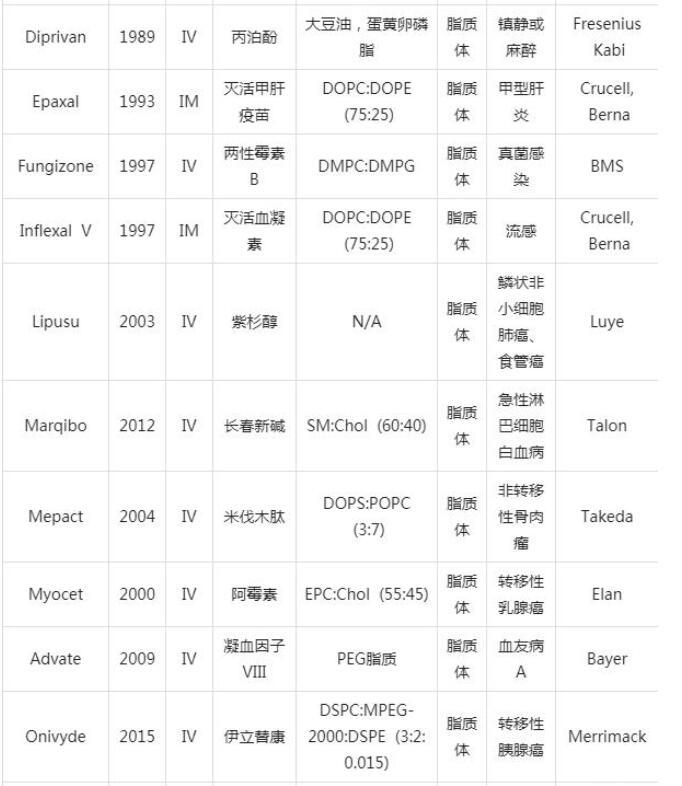 表1已獲批上市的脂質納米粒產品
