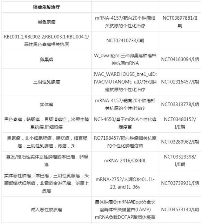 表2臨床試驗中的脂質納米粒mRNA藥物和疫苗