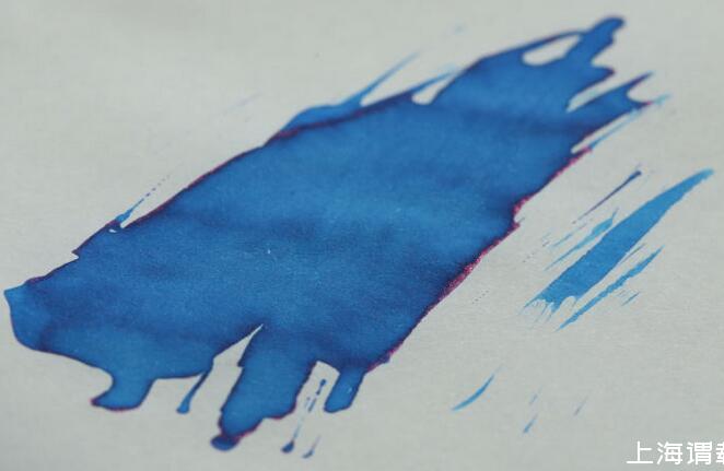 萬寶龍的寶馬藍這款是我日常使用最多的,它在邊緣干透后會有一層金屬色澤的反光,這就是sheen,藍色墨水出紫紅色的sheen是相對比較常見的