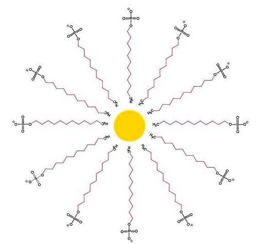 圖2.十二烷基硫酸鈉膠束的簡單圖例。