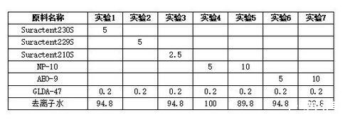 實(shí)驗(yàn)2結(jié)果:特種表活體系在清潔速度及清潔力上能明顯對(duì)比出與普通非離子表面活性劑處理效率的區(qū)別,具體數(shù)據(jù)如下表