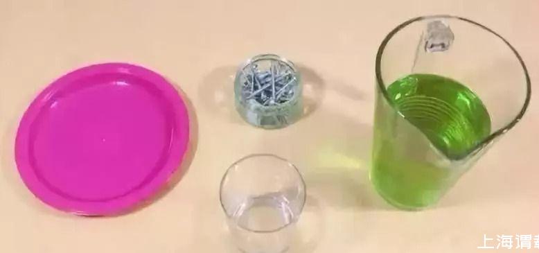 鐵釘,水杯,水(有顏色的話效果更明顯),塑料小盤子