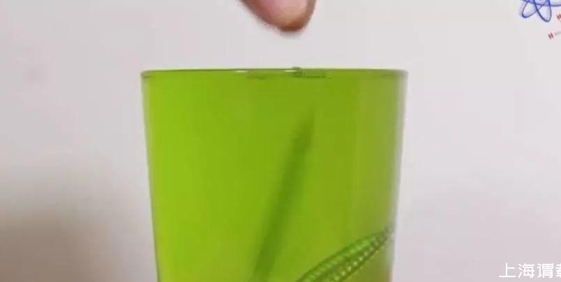 首先,我們往杯子里面倒入水,慢慢倒,直到水倒?jié)M杯子。