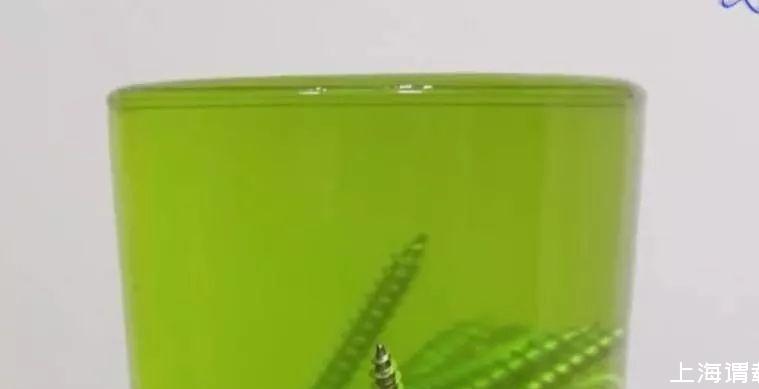 接著,我們把準備好的釘子一顆、一顆、一顆地放進杯子里面,水應該沒有溢出來吧?