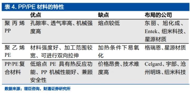 鈉電池的電解液和隔膜均具備成熟的量產(chǎn)技術(shù)。電解液在電池中起傳導(dǎo)離子的作用,其中主要由溶劑、電解質(zhì)和其他添加劑組成。鋰電池的電解質(zhì)為六氟磷酸鋰,而鈉電池的電解質(zhì)為六氟磷酸鈉。隔膜主要起分隔電池正負極,防止兩極接觸而短路的作用,并且隔膜還需要支持電解質(zhì)離子通過,鈉電池和鋰電池均使用PP或者PE隔膜。
