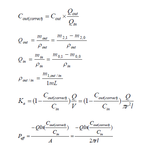 對(duì)于易于吸收的藥物,即Peff>0.2×10?4cm/min,灌流時(shí)溶液密度的變化對(duì)測(cè)量結(jié)果影響不大,可以默認(rèn)ρin=ρout=1 g/mL,即校正濃度Cout(Correct)=Cout×mout/min。