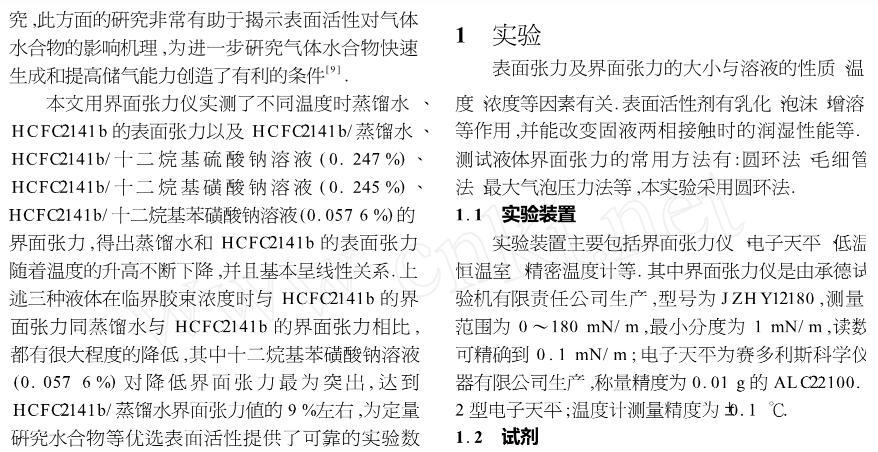 表面活性劑對(duì)氣體水合物界面張力的影響