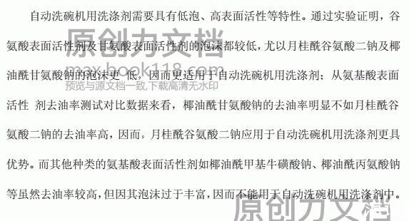氨基酸表面活性劑在機用洗碗劑中的應用