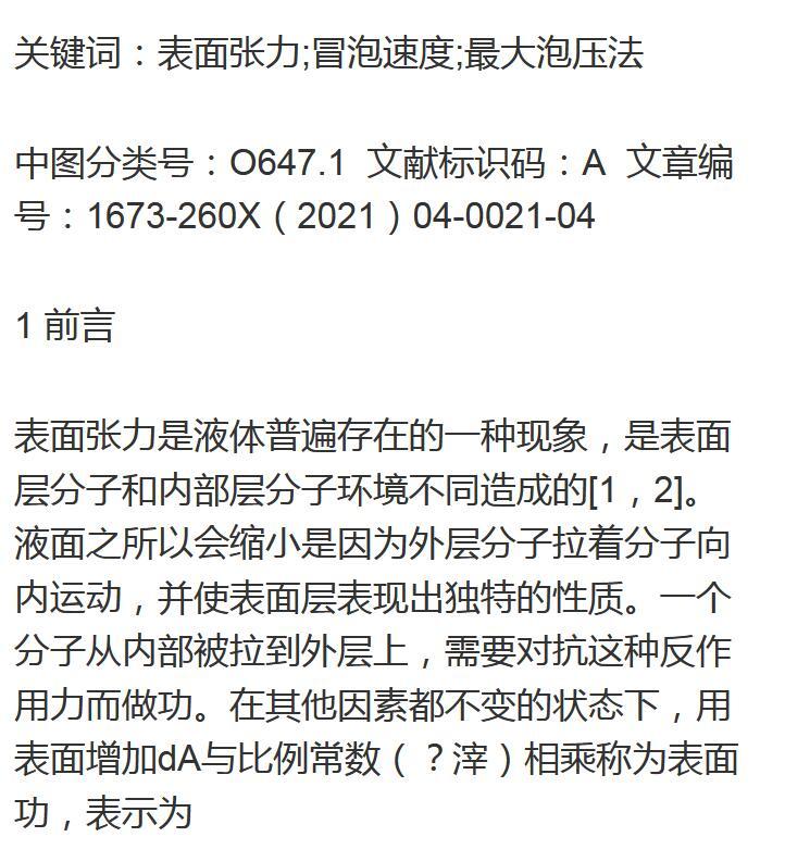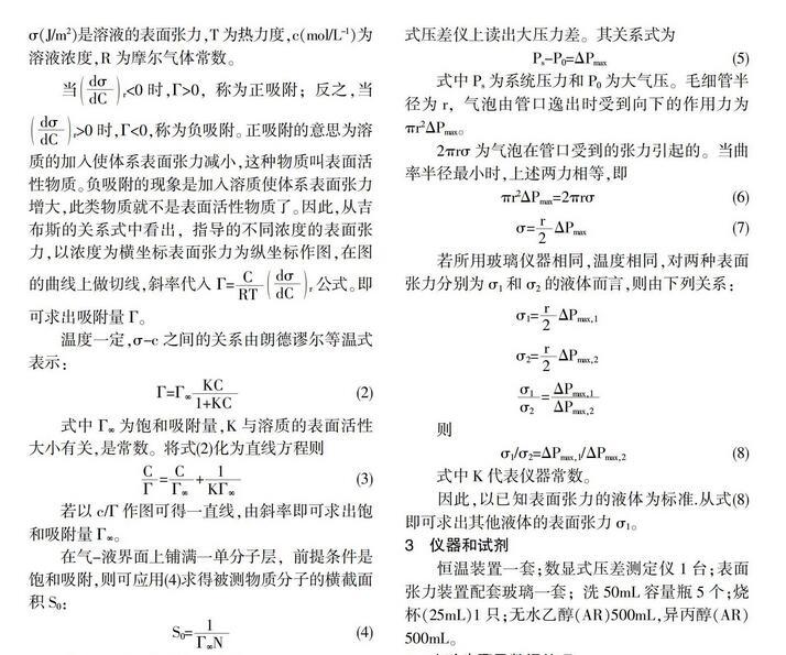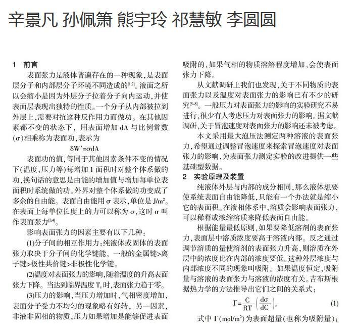 表面張力測(cè)定實(shí)驗(yàn)的改進(jìn)——冒泡速度對(duì)其影響的初探