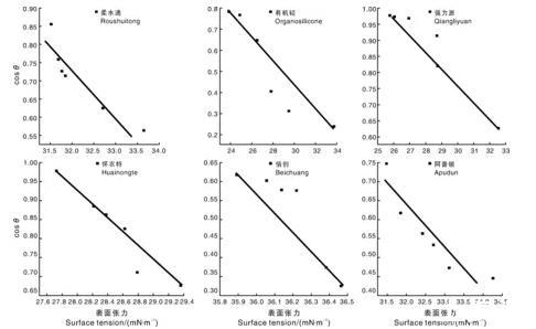 圖2阿維菌素表面張力與接觸角的關系
