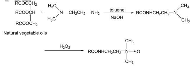 迄今為止,大多數報道的酰胺胺氧化物表面活性劑是通過使用合成的 單獨的叔胺化合物,這是非常昂貴的。 此外,一些 這些叔胺化合物也有毒和易燃,不可避免地會 污染環境。 作為天然可再生資源,蓖麻油和棉籽 油,價格很低,不飽和度高,可以使用 作為各種化學反應的基礎材料。 此外,蓖麻油還含有 羥基,可以增加產品的水溶性。 此外,對于 據我們所知,大量研究已經證實酰胺胺氧化物 與沒有酰胺基團的表面活性劑相比,具有酰胺基團的表面活性劑表現出更好的性能 酰胺鍵。