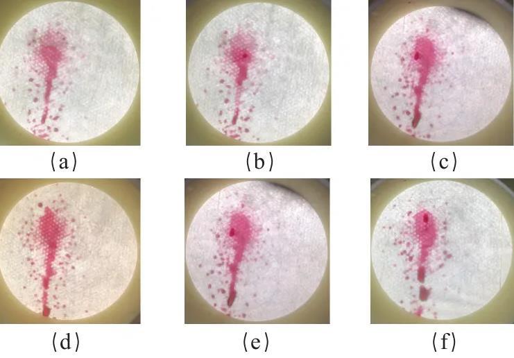 圖3口罩內(nèi)表面的合成血液穿透試驗情況